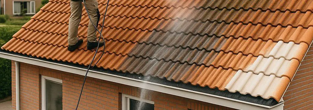 Softwash is een lage-druk methode met biologisch afbreekbare middelen die mos, algen en aanslag niet alleen verwijderen, maar ook de ondergrond desinfecteren. Geen hogedruk, minder water en een langdurig schoon resultaat. Ideaal voor dakpannen en andere kwetsbare oppervlakken.